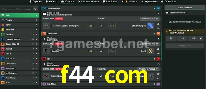 O f44 com oferece uma grande seleção de opções de apostas em e-sports com probabilidades competitivas